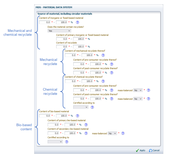 Figure 1: Evaluate the recycled and bio-based content of materials in IMDS system